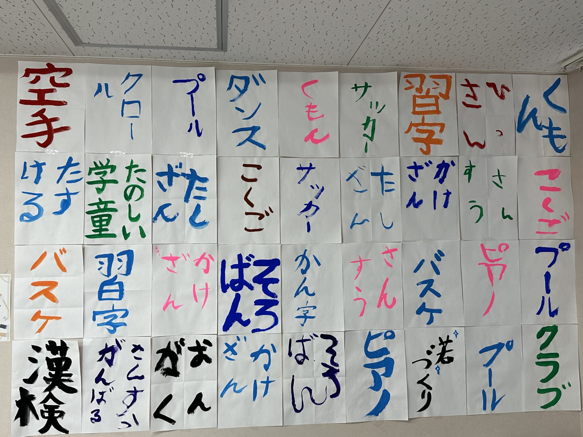 25.04.12 ブログ 虹色の目標🌈 春休みイベント第2弾は、絵の具を使った習字です! テーマは「新学期にがんばりたいこと」 低学年の子は、慣れない筆に苦戦しながら一字一字丁寧に書いていました👍 目標に向かってがんばろう!! 一覧へ戻る