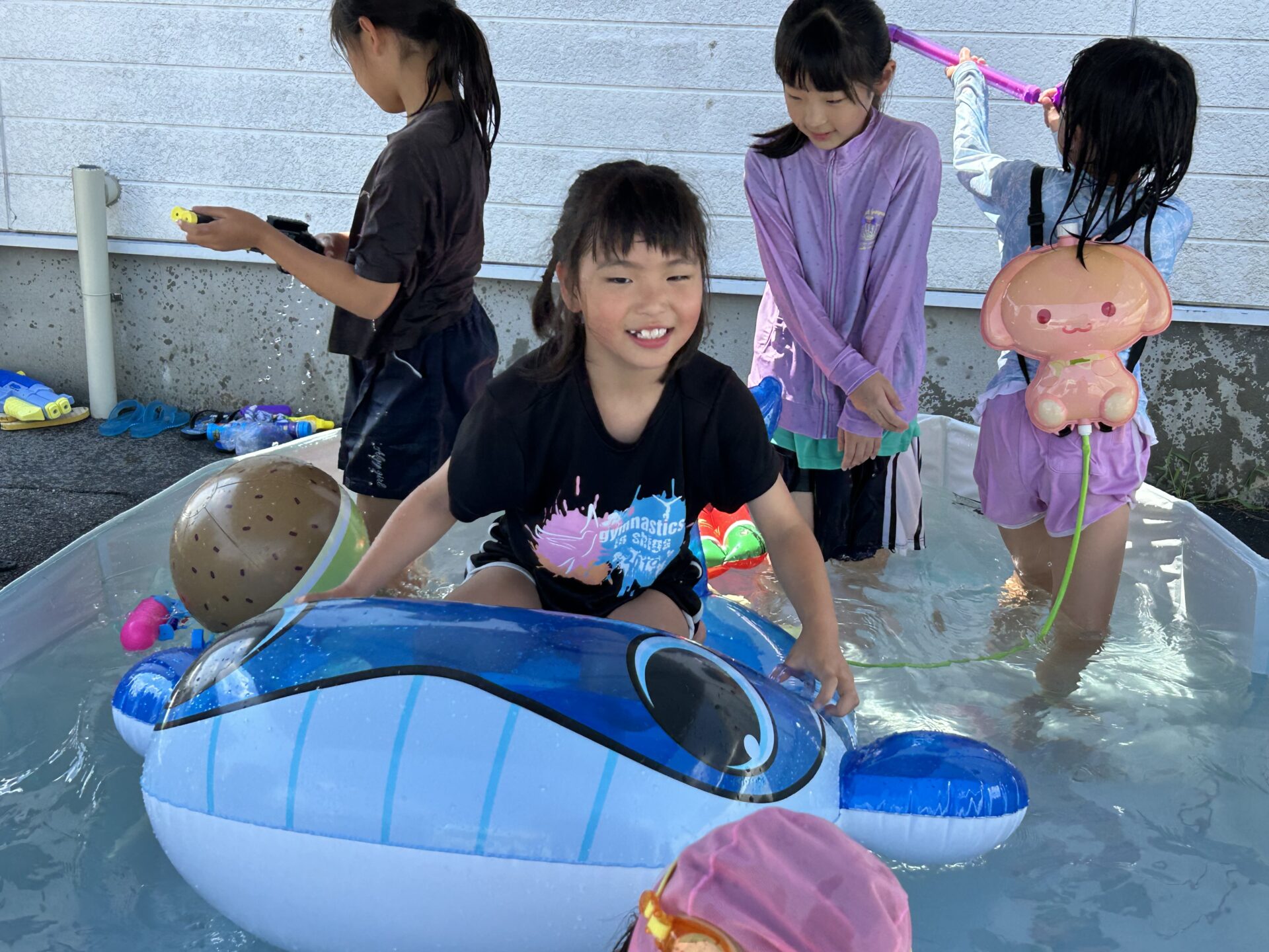 大きめのプールに浮き輪やビーチボール、水鉄砲を準備して楽しい時間を過ごすことができました👍