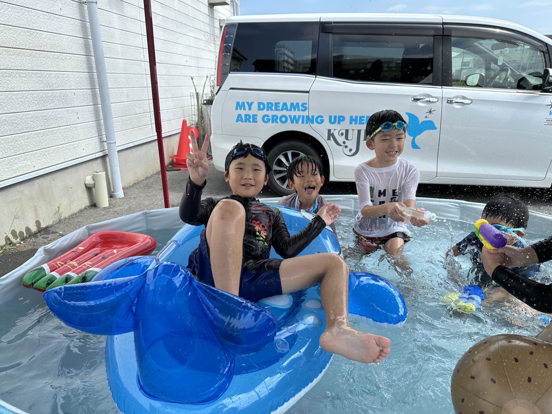 25.08.06 ブログ 夏休み行事④ 暑い日には・・・? 8月になりましたが、厳しい暑さが続いています・・・😓 室内で過ごす時間が多いため、今年の夏休みは3日に分けて水遊びの時間を作りました😊 大きめのプールに浮き輪やビーチボール、水鉄砲を準備して楽しい時間を過ごすことができました👍 一覧へ戻る